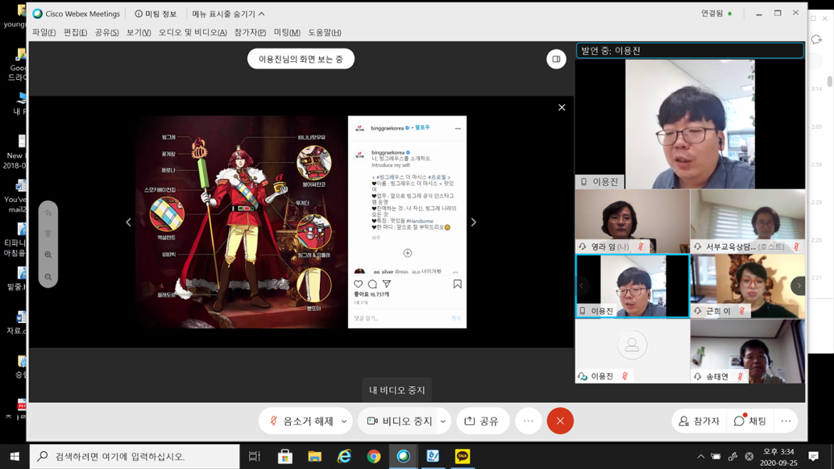 코로나19 때문에 거의 모든 수업이 온라인으로 전환되면서 이 수업도 시작 전부터 걱정이 많았다. 포토샵, 와콤태블릿, 웹엑스를 사용하는 터라 다른 수업에 비해 이렇게 허들이 세 개나 되었기 때문이다. 그러나 첫날 오리에테이션을 하고 나서 이 걱정은 기대로 바뀌었다. KT, SK 등 기업 브랜드 캐릭터 및 이모티콘 제작에 참여하신 김욱환(표현하는나무 대표) 강사님의 만렙 능력치와 수강생들의 뜨거운 열정 때문이다. 속도는 조금 느릴지 몰라도 꾸준히, 천천히 하면 결국은 해낼 것이라는 믿음이 생긴다.