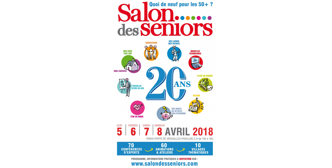 ▶ 올해 20회를 맞이하는 프랑스 최대의 시니어 박람회인 살롱 데 세니어(Salon des Seniors)가 파리 15구 포르트 드 베르사유 박람회장에서 4월 5일부터 8일까지 4일간 열린다. 시니어 인스티튜트(l'Institut Français des Seniors)가 시니어 전문잡지 노트르 떵(Notre Temps)과 협력하여 개최하는 이 박람회는 올해로 20주년을 맞이하였다.