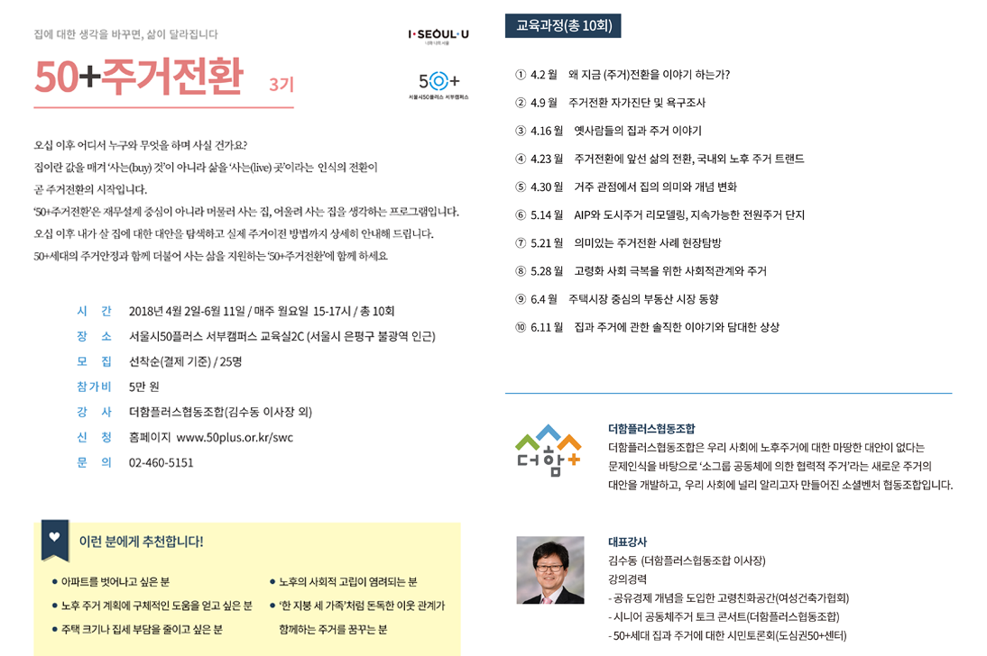 <주거교육 정규 교육과정 커리큘럼 (상세내용 https://50plus.or.kr/swc/education-detail.do?id=160286)>