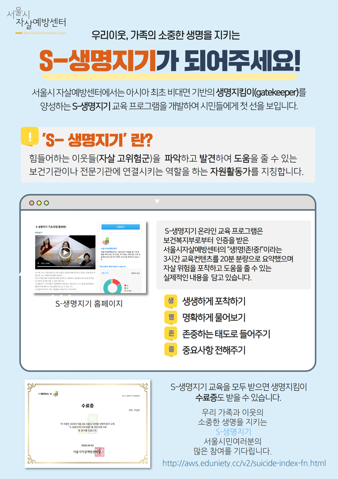 - 교육대상 : 자살예방에 관심있는 서울시민 누구나