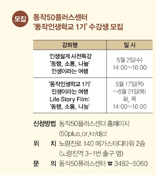 동작구 소식지 5월호 '동작인생학교 1기' 수강생 모집 안내