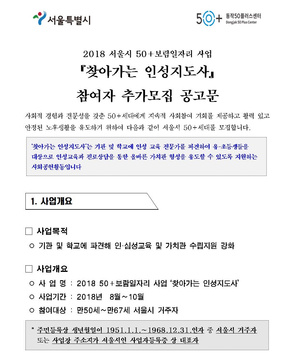 2018년 서울시 보람일자리사업 찾아가는 인성지도사 하반기 추가 모집공고_첨부2.hwp