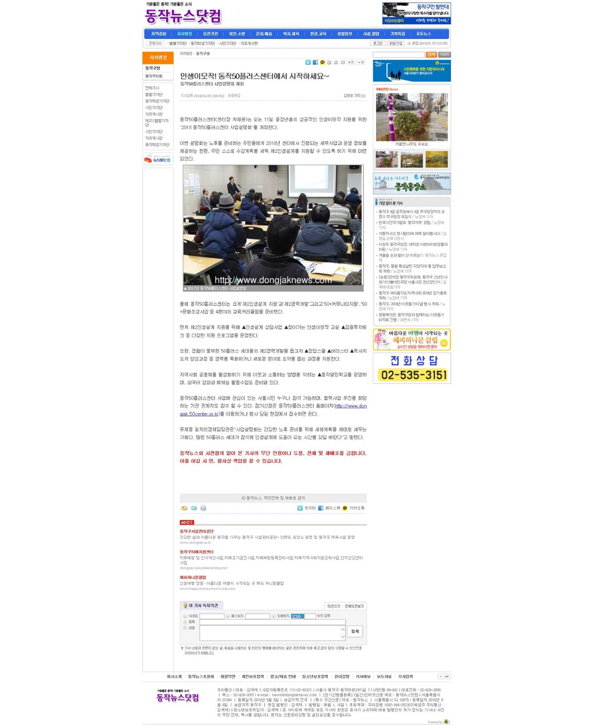 (180105 동작뉴스닷컴)인생이모작! 동작50플러스센터에서 시작하세요~
