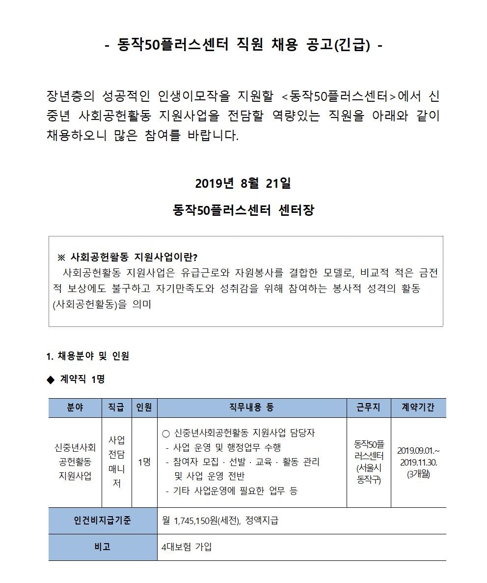 동작50플러스센터_신중년사회공헌활동 전담매니저공고문.hwp