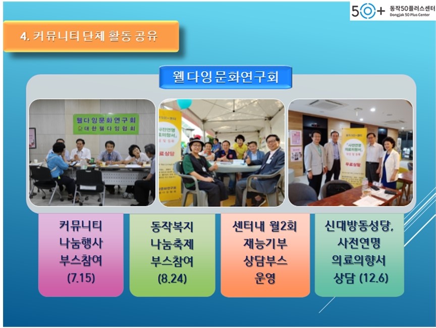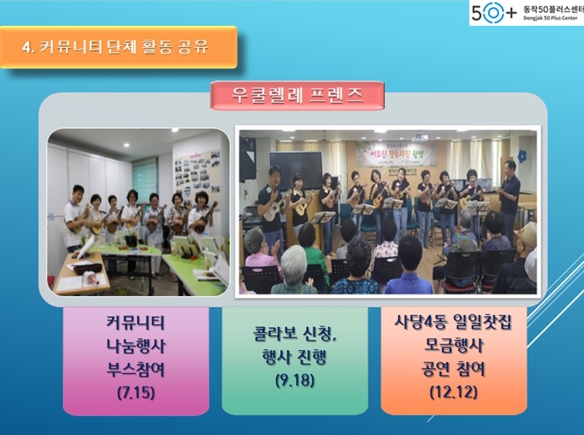2019년도 동작50플러스센터 '커뮤니티 남달라' 의 활동 공유회가 진행되었습니다.