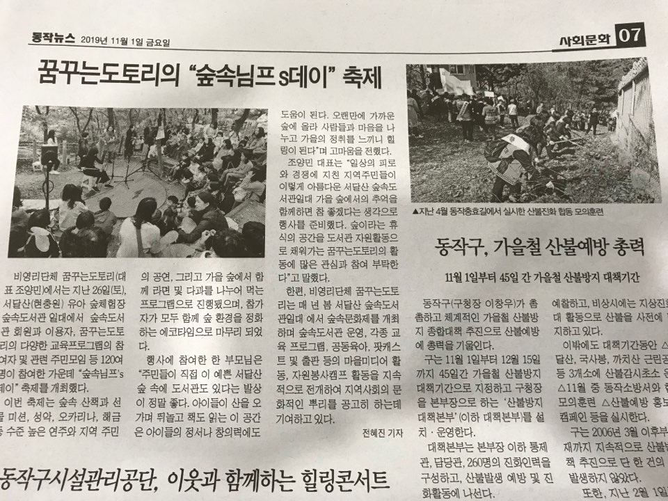 (동작뉴스) 꿈꾸는 도토리의 "숲속님프 S데이" 축제