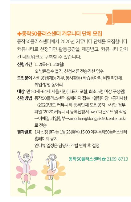 (2020년 1월호 동작어르신 소식) 동작50플러스센터 커뮤니티 단체 모집