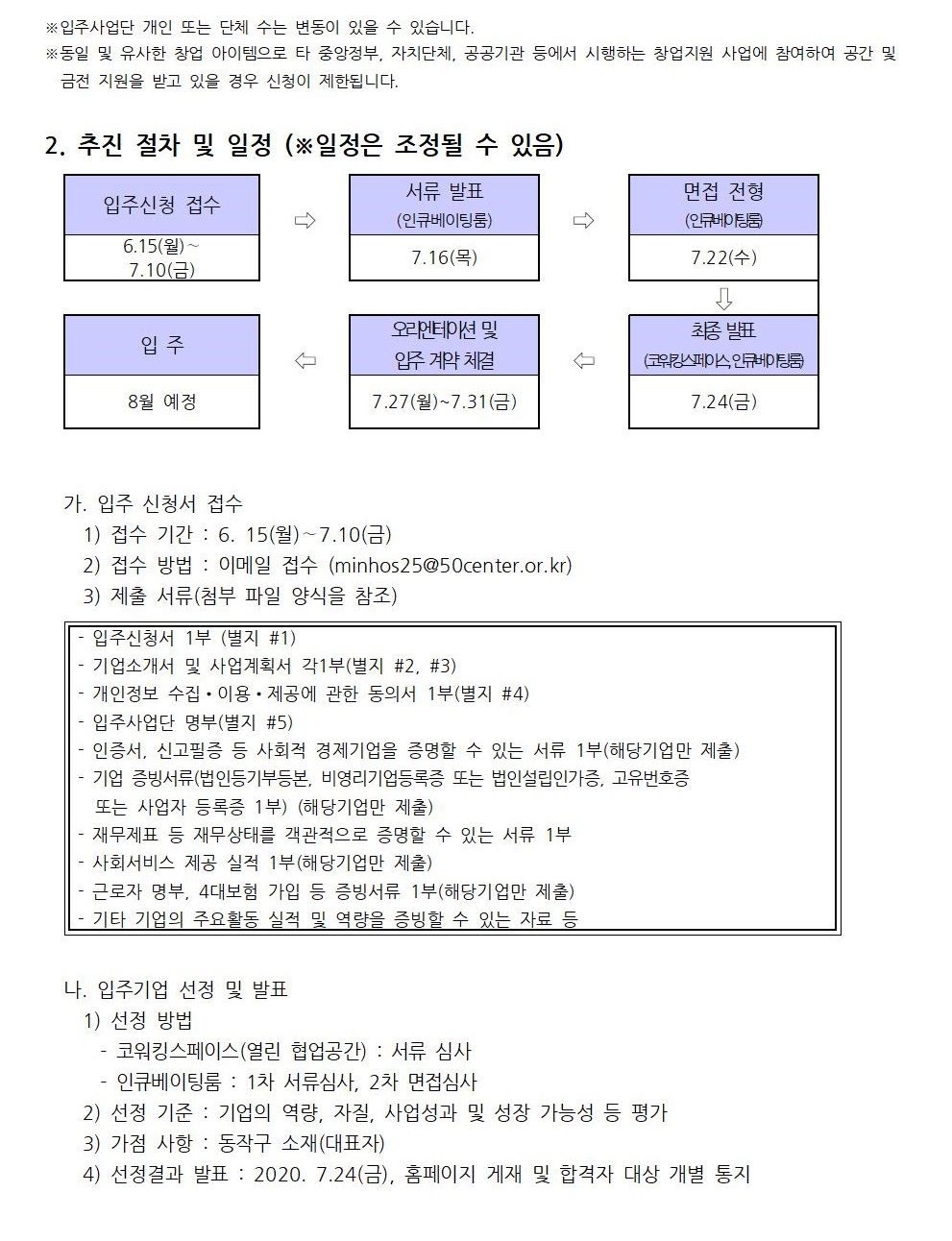2020 상반기 입주사업단 모집공고(인큐베이팅룸, 코워킹스페이스)
