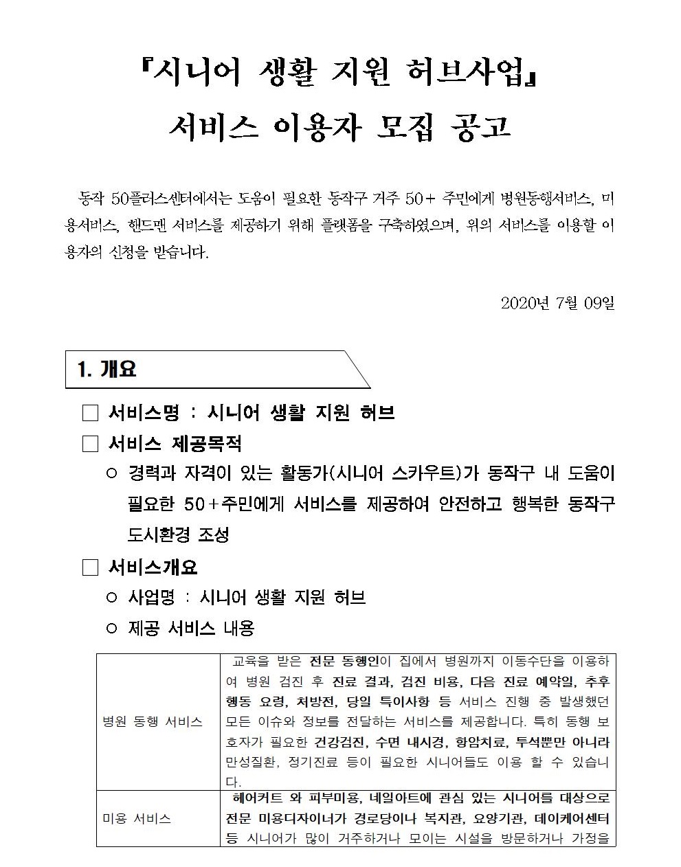 『시니어 생활 지원 허브사업』 서비스 이용자 모집 공고