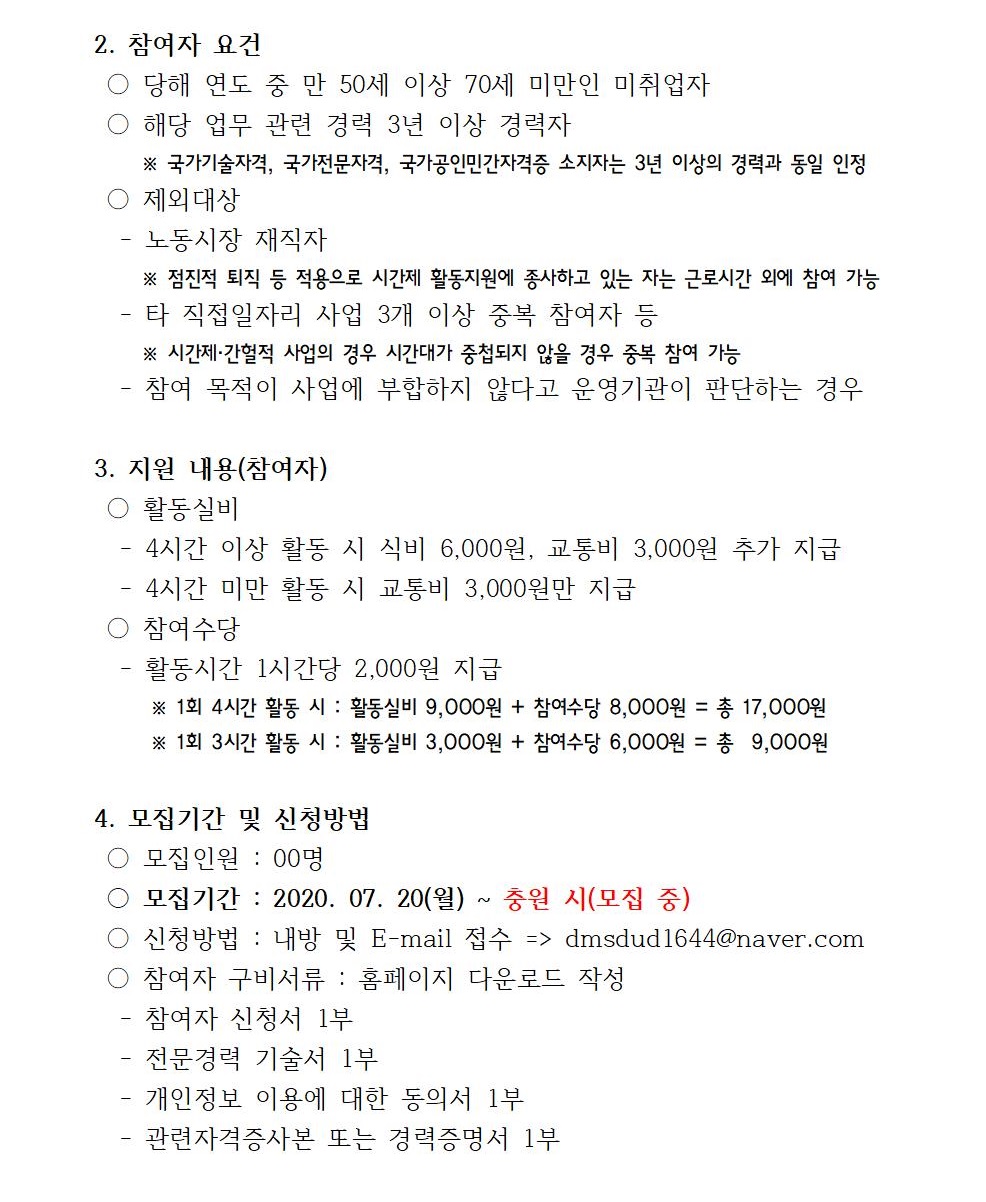 2020년 신중년 사회공헌활동 지원사업 참여자 모집