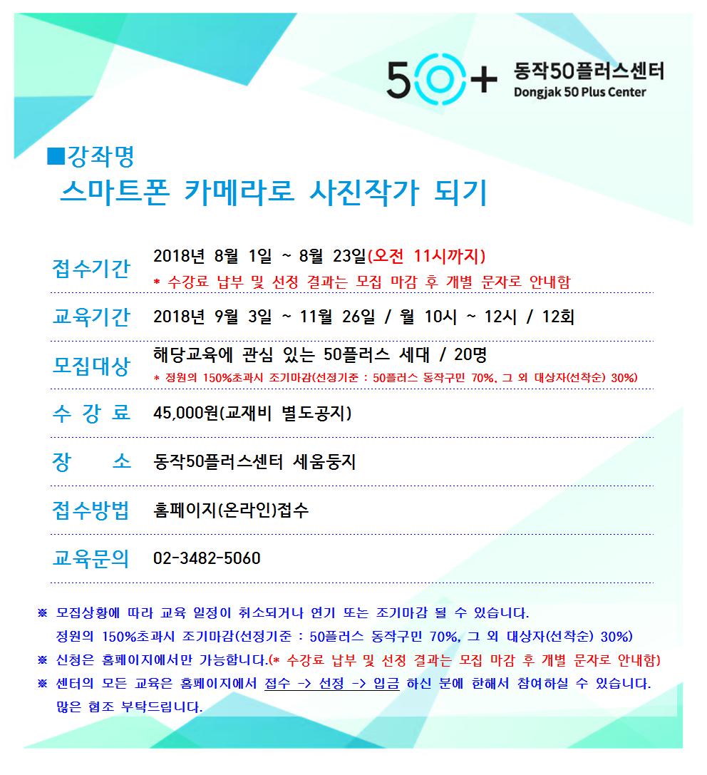 (2 회차) 2018.09.10(10:00 ~ 12:00) 1. 세움둥지 윤홍선 • 스마트폰으로 찍는 창작사진 – 인물 풍경, 접사, 일상.