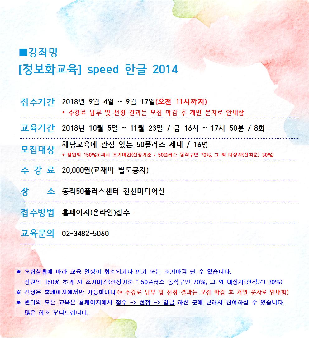 (1 회차) 2018.10.05(16:00 ~ 18:00) 5. 전산미디어실 배은미 한글2014기초(입력&글자모양,문단모양) -