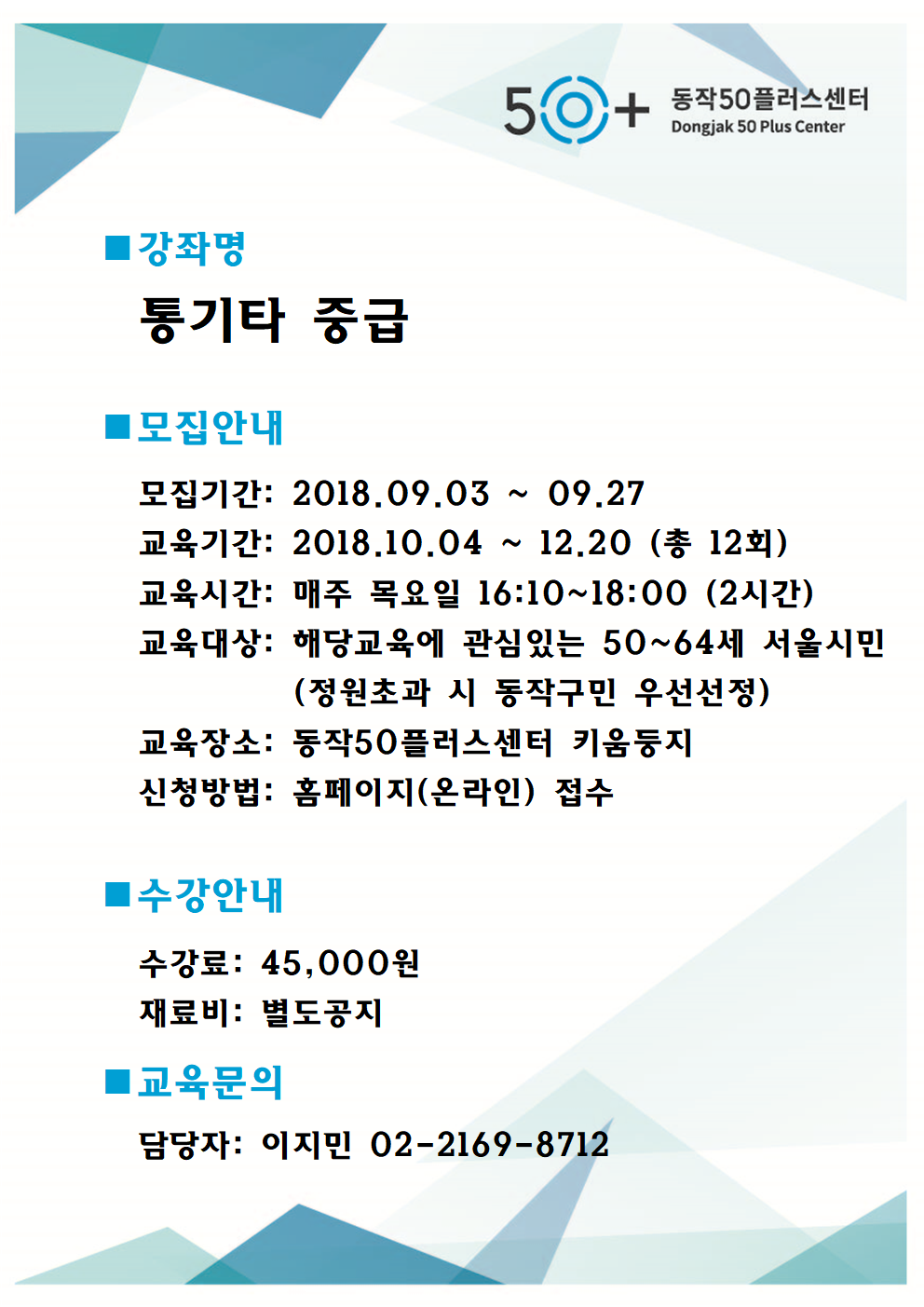 • - 現 영등포50플러스센터 문화교실 기타강사