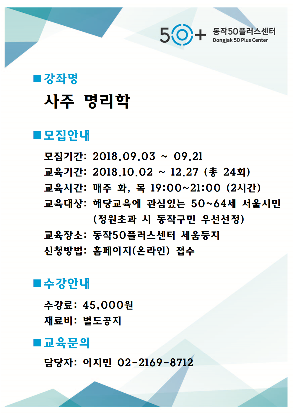 • - 영등포 50플러스에서 성명학 강의