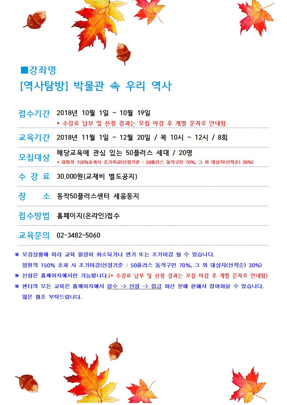 • - 50플러스센터, 평생학습관 강의 (궁궐, 종묘, 왕릉, 박물관 등 강의 및 현장 해설)