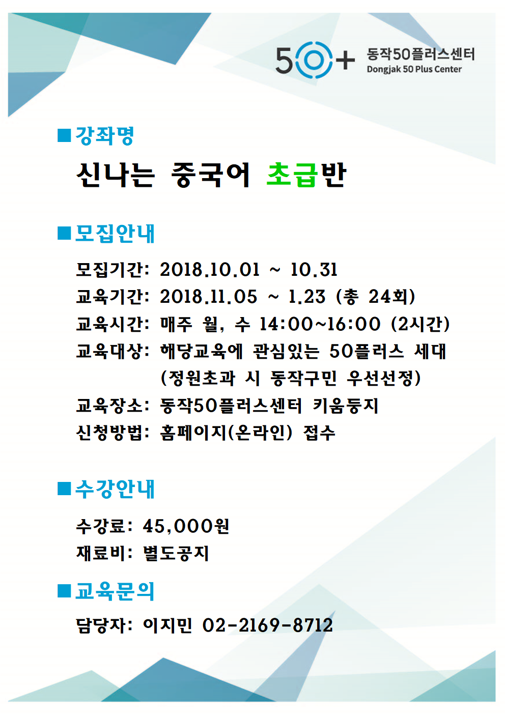 • - 장승중학교, 원신 초등학교, 고원 초등학교, 백산 초등학교, 본동 주민자치센터, 신대방동 주민자치센터 강사