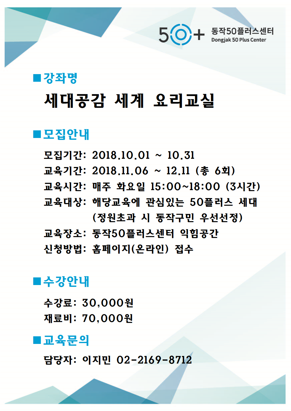 • - 동작50플러스센터 세계요리/아버지요리/시니어건강요리 강사