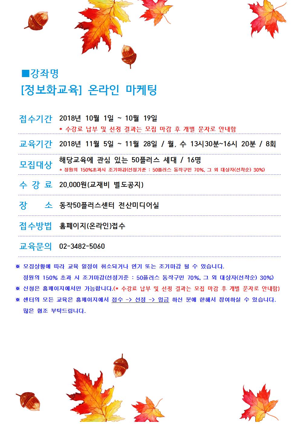 (1 회차) 2018.11.05(13:30 ~ 16:30) 5. 전산미디어실 고상희 온라인 마케팅의 개념 및 종류, 네이버 블로그 생성하기 : 온라인 마케팅의 종류 및 특징, 네이버 마이비즈니스로 업체등록하기, 네이버 광고시스템, 네이버 블로그 생성 및 초기 세팅 및 포스팅하기 -
