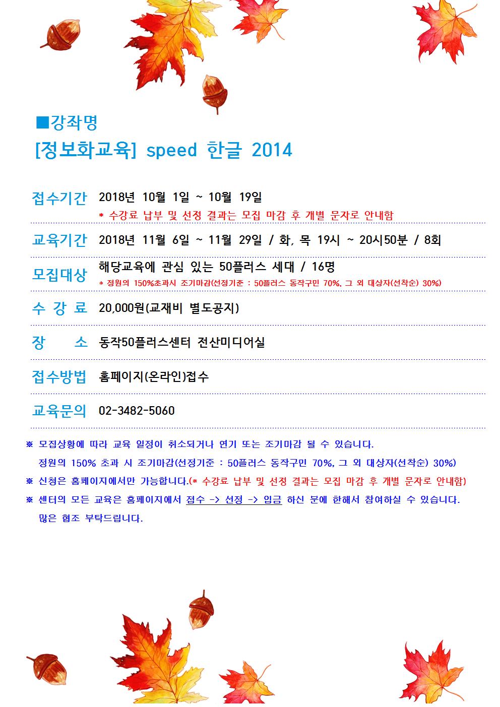 (1 회차) 2018.11.06(19:00 ~ 21:00) 5. 전산미디어실 배은미 한글2014기초(입력&글자모양,문단모양) -