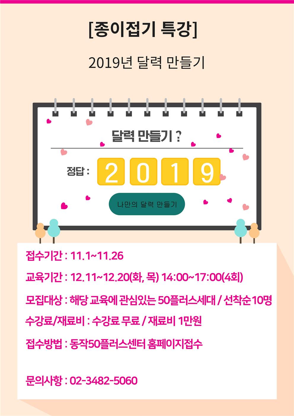 [종이접기-특강] 2019년 달력만들기 - 조기마감