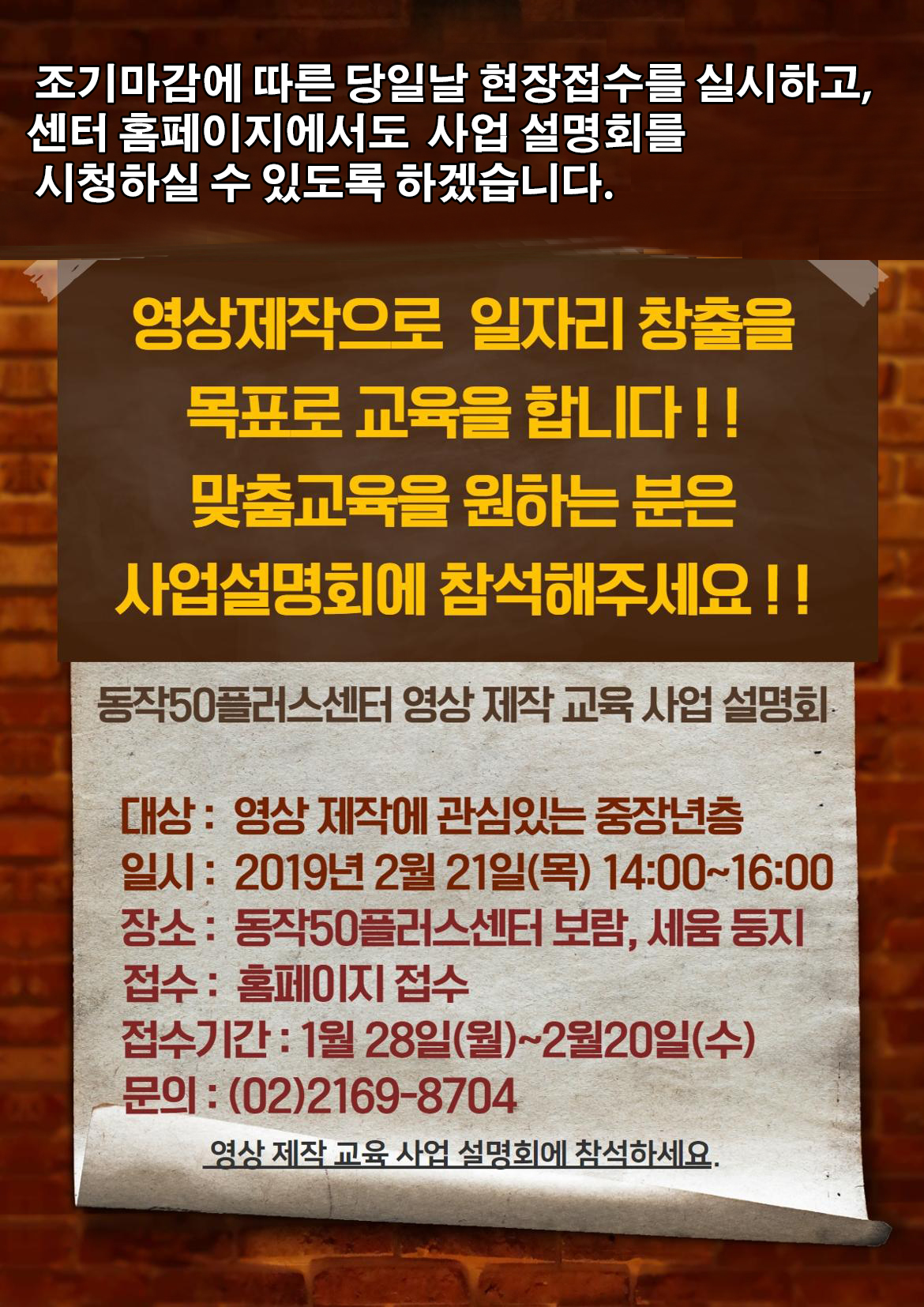 2019년 동작50플러스센터 영상 제작 교육 사업 설명회(조기마감)
