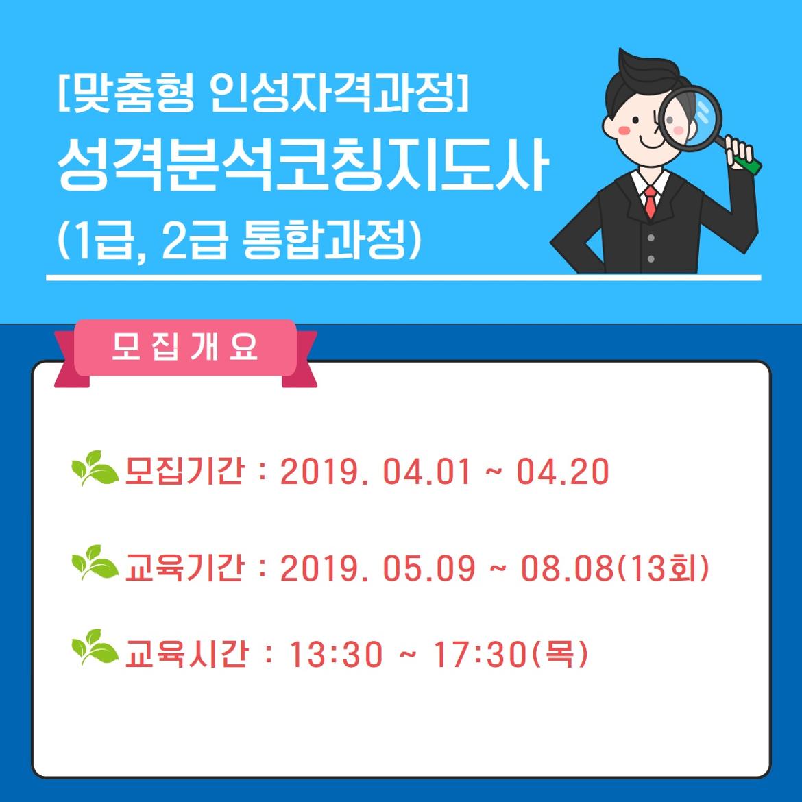 맞춤형 인성자격과정 성격분석코칭지도사 통합 과정(1급~2급)
