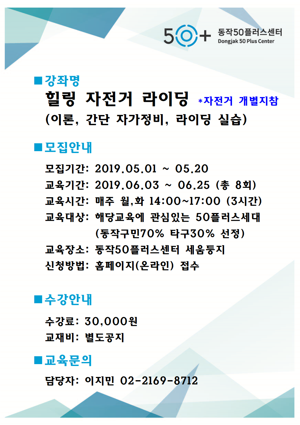 • - 노원구청 문화센터 자전거 전임강사 재직중