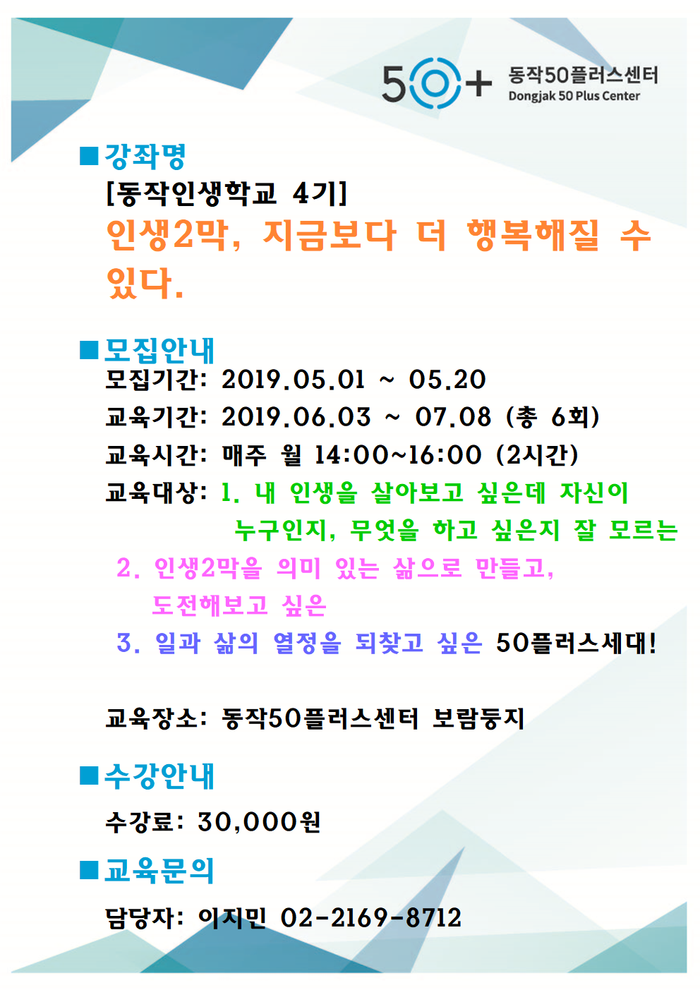 [동작인생학교 4기] 인생2막, 지금보다 더 행복해질 수 있다.