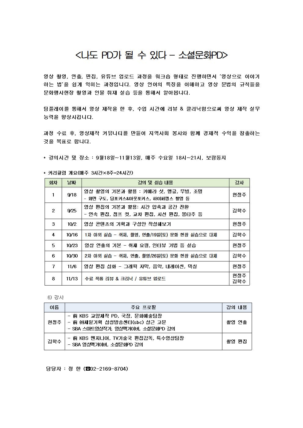 나도 PD가 될 수 있다-소셜 문화 PD(조기마감)