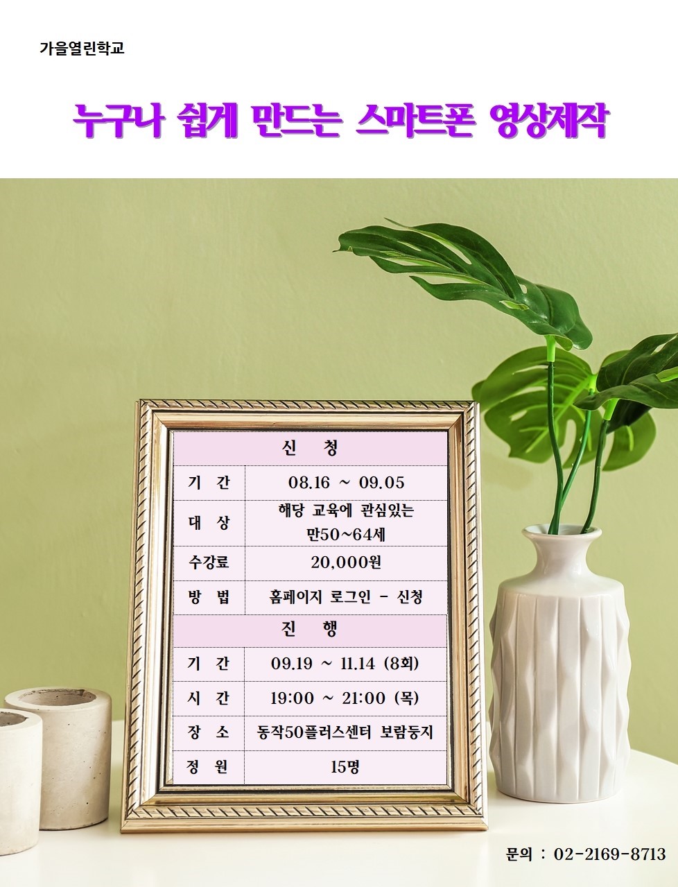 [가을열린학교] 누구나 쉽게 만드는 스마트폰 영상제작 (조기마감)