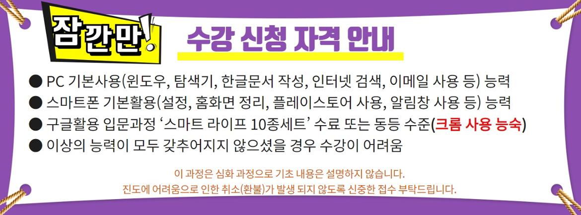 ∙ 등록되지 않은 상태로 강좌 참석 시 수강 제한, 취소 및 강제 퇴실