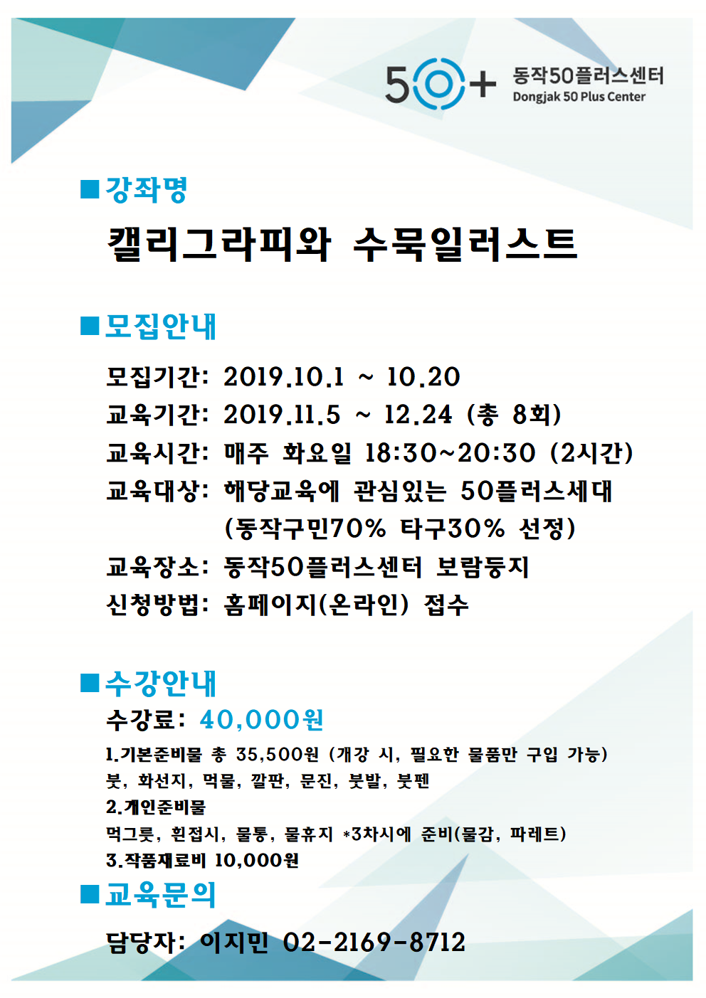 • - 금천문화원, 양천갈산도서관, (용문동자치센터) 출강