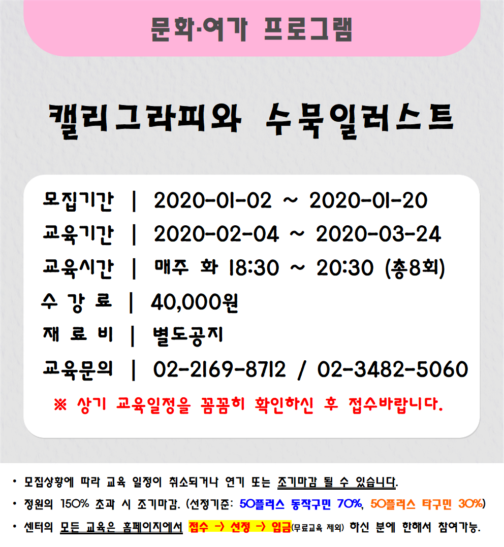 정원의 150% 초과 시 조기마감 (선정기준 : 동작구민 70%, 타 구민 30%)