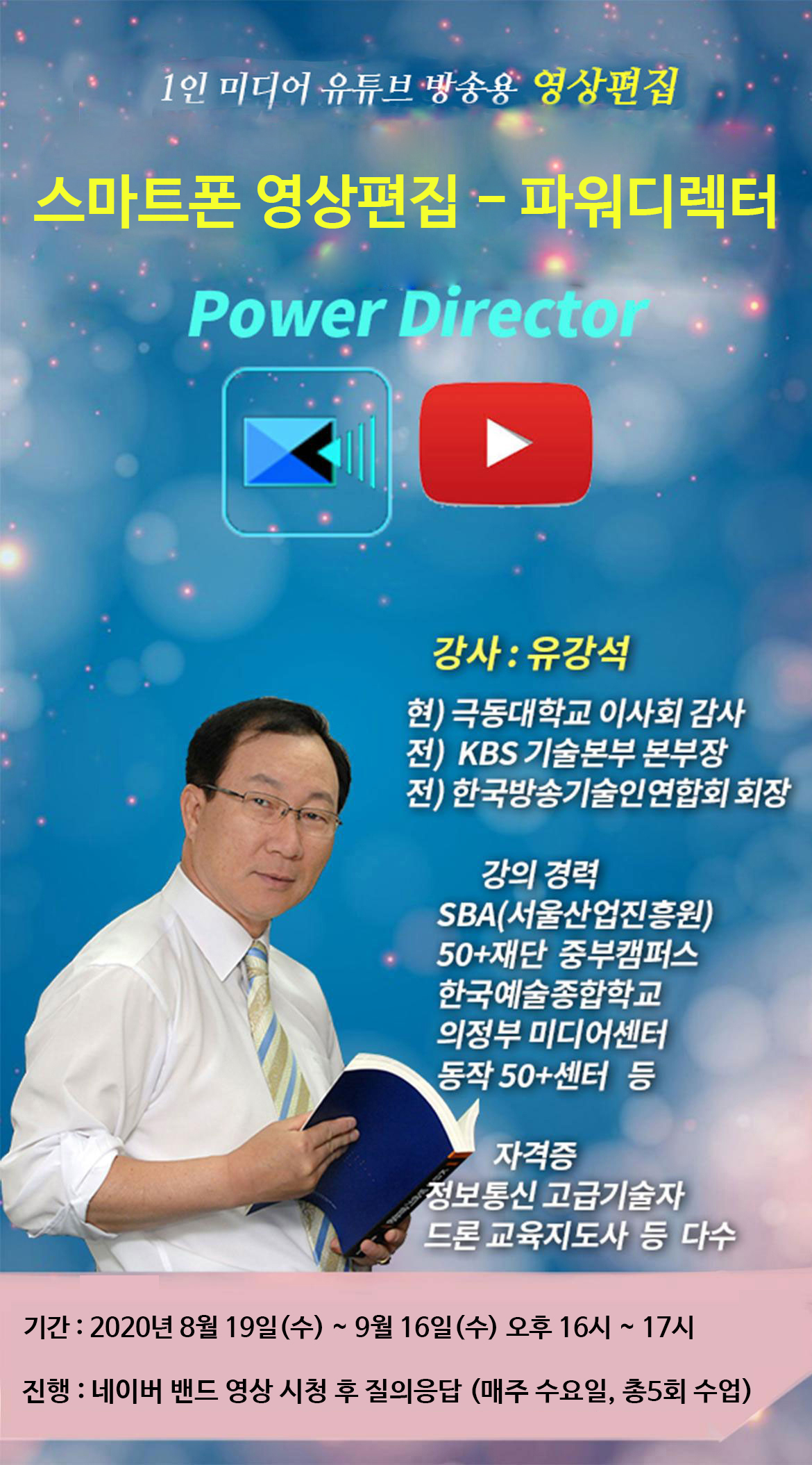 (3 회차) 2020.09.02(16:00 ~ 17:00) 6. 스튜디오룸 유강석 팬&클롭, 특수효과, 자막, 배경음악, 마스크, 크로마키 스마트폰