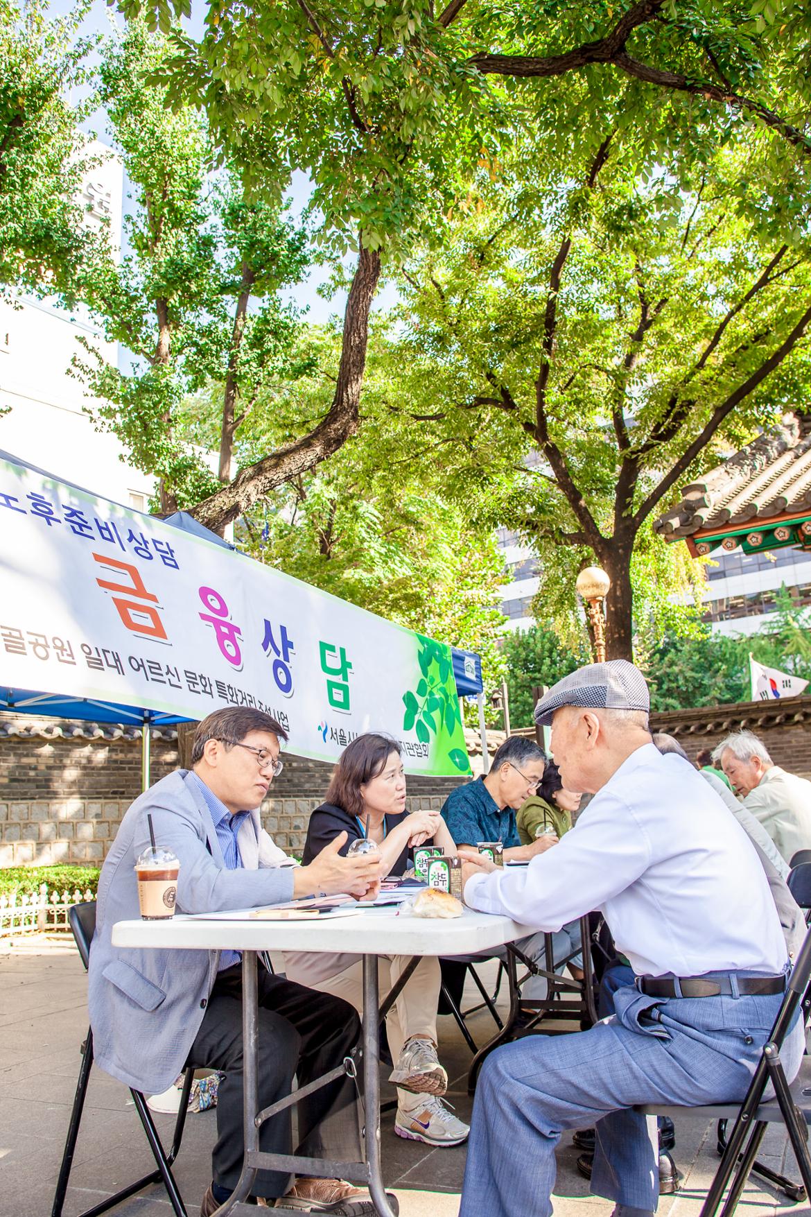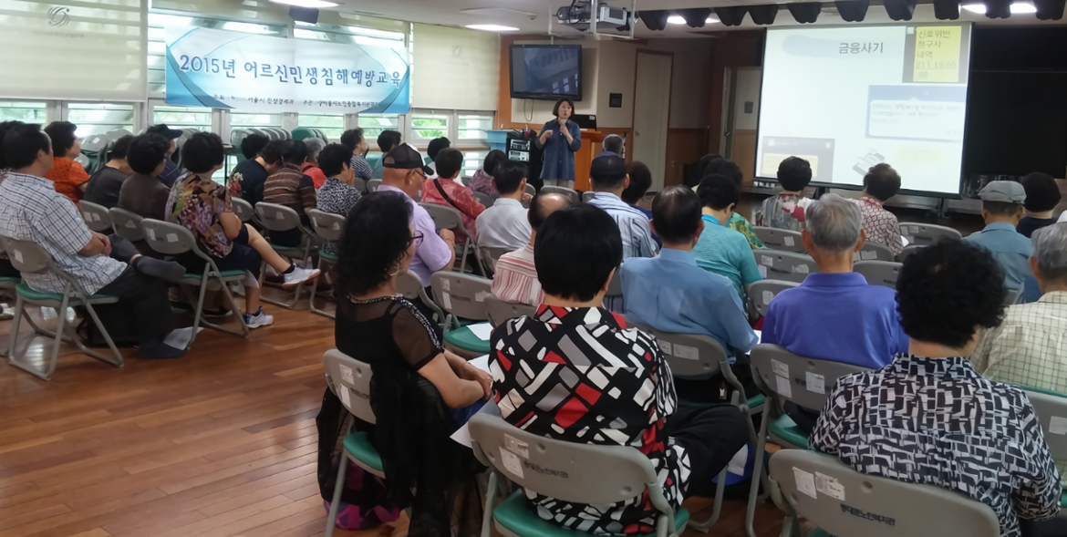 ▲노인종합복지관 금융사기 예방교육(좌), 탑골공원 어르신 노후상담(우)
