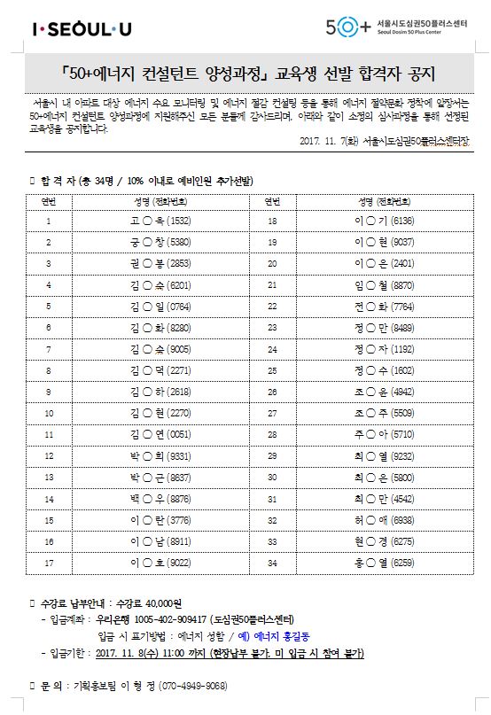 50+에너지컨설턴트양성과정 교육생 선발 합격자 공지