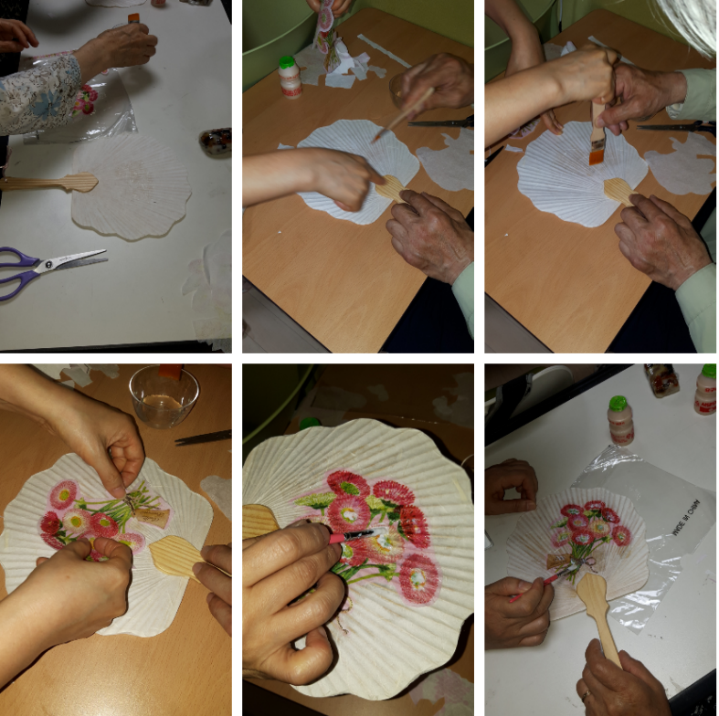 섬세하지는 않지만 조심스런 가위질과 풀칠, 코팅을 위한 붓질로 어르신들의 눈과 손이 동시에 집중되는 시간으로