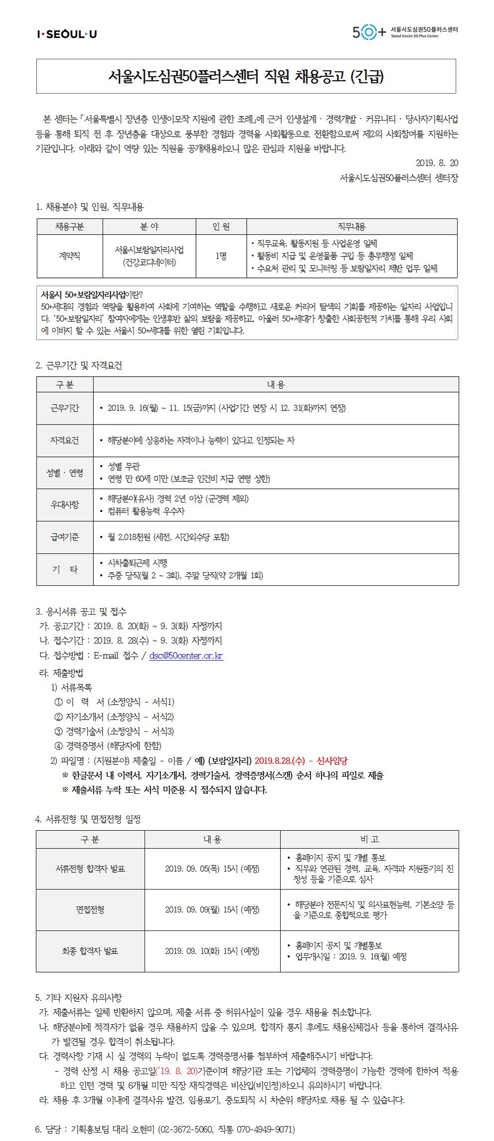 [채용] 2019 서울시보람일자리 직원 채용 공고 (긴급)