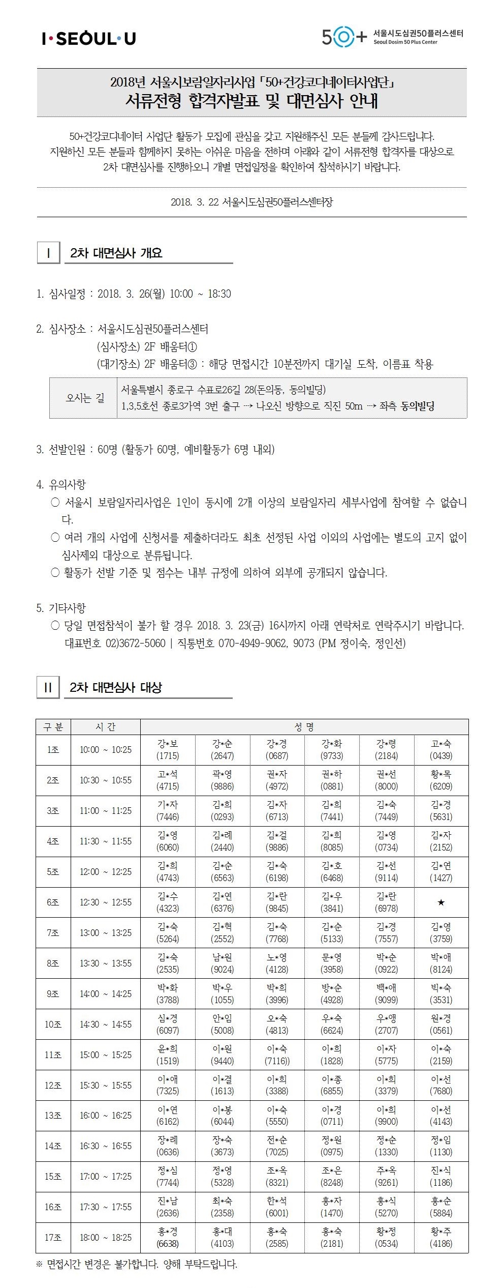 (보람일자리-건강코디) 서류전형 합격자발표 및 대면심사 안내
