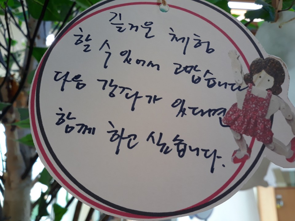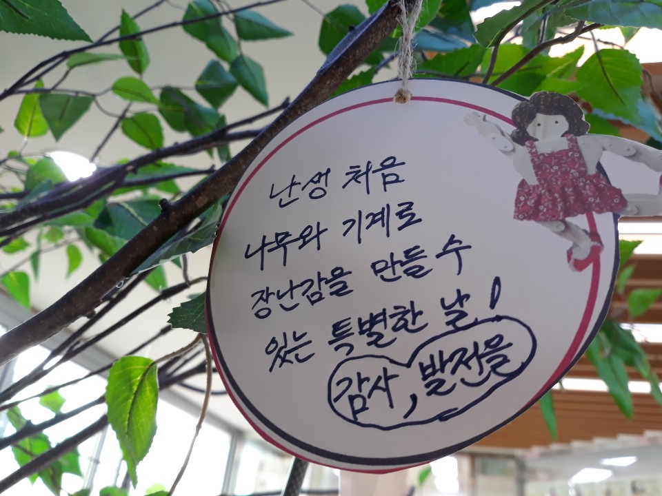 도심권센터 8층 작은목공실 앞, 소망나무에 걸린 글귀를 되새겨보면서 그야말로 작은 감동이 되는 체험이구나