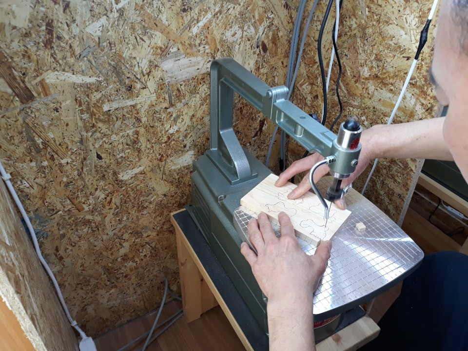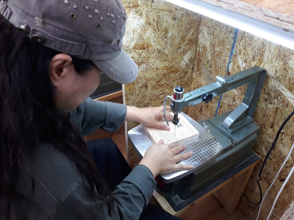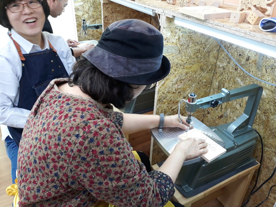 "이전에 나무공예를 해봤는데 이건 처음이다, 손주 장난감을 만들어주고 싶다."