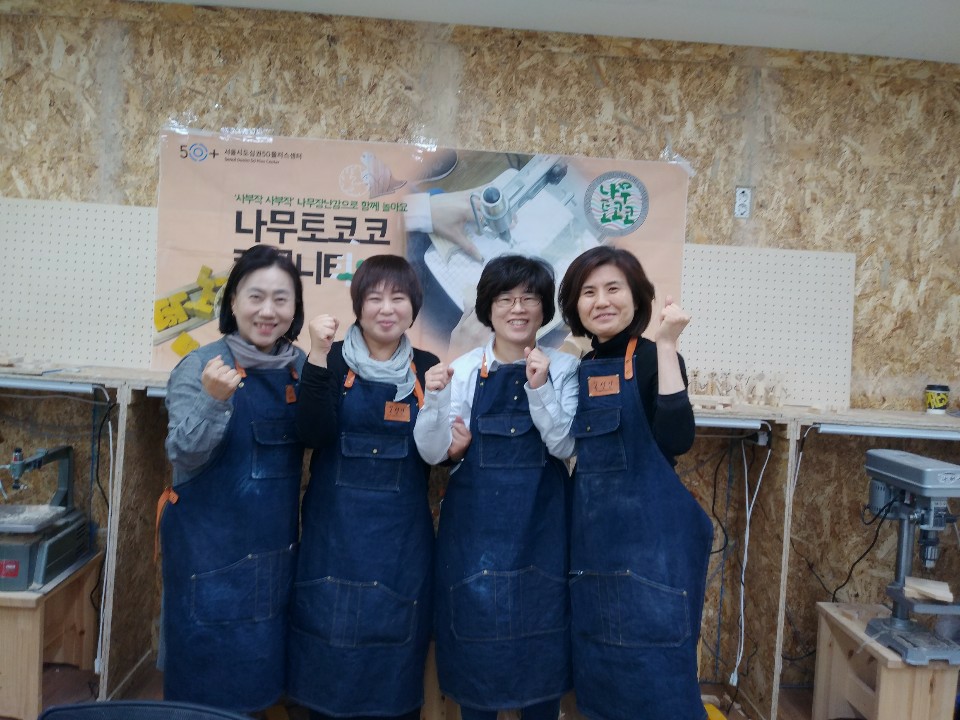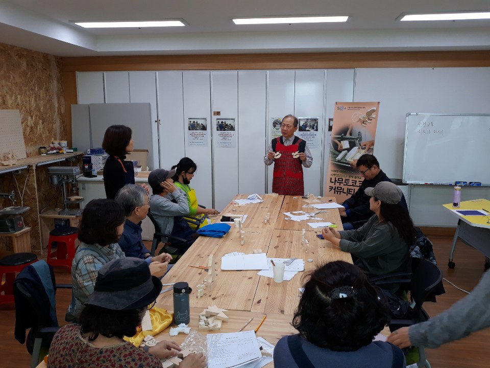 도심권50플러스센터에 등록된 '나무토코코'커뮤니티 회원들이 <내가 만드는 나만의 장난감> 원데이클레스를