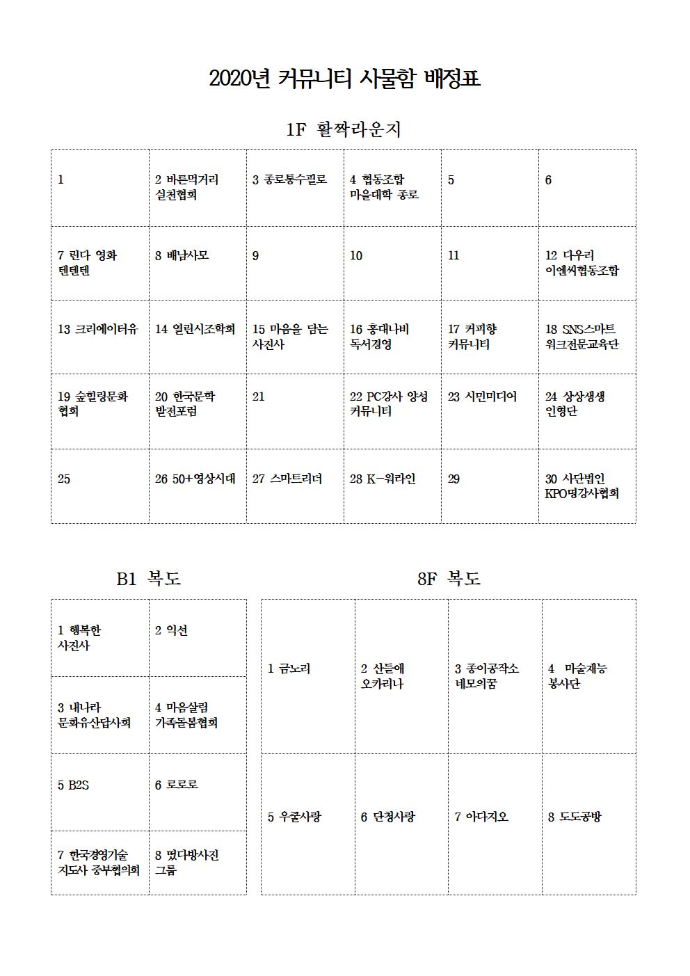 ○ 2020년 커뮤니티 사물함 배정현황(1/31 기준) ※ 각 사물함 이름표(커뮤니티명) 교체 완료