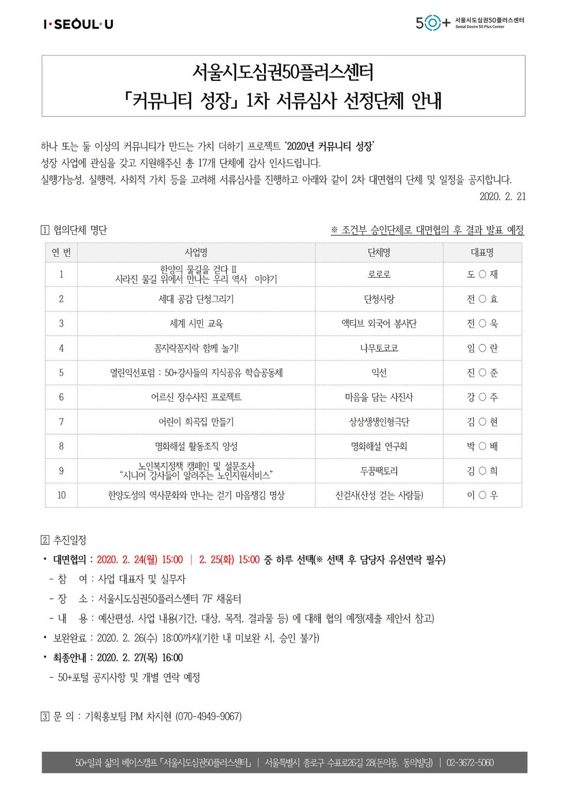 <커뮤니티성장> 1차 서류심사 선정단체 안내