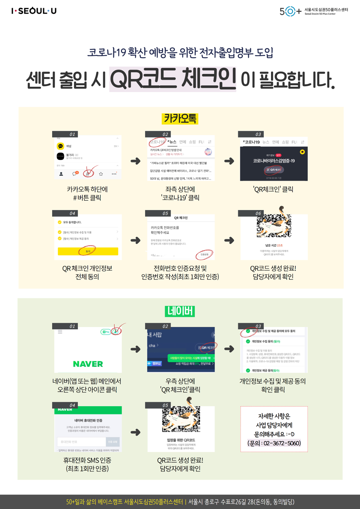 전자출입명부 도입 'QR코드 체크인' 안내
