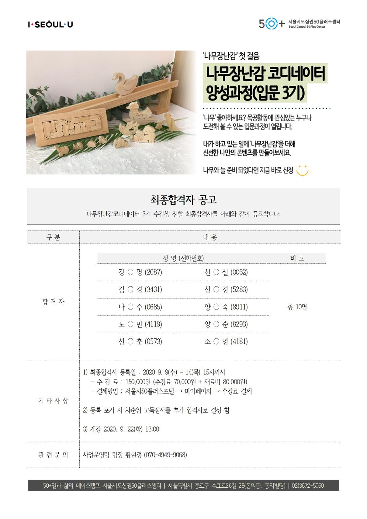 나무장난감코디네이터양성과정(입문3기) 최종합격자 공고