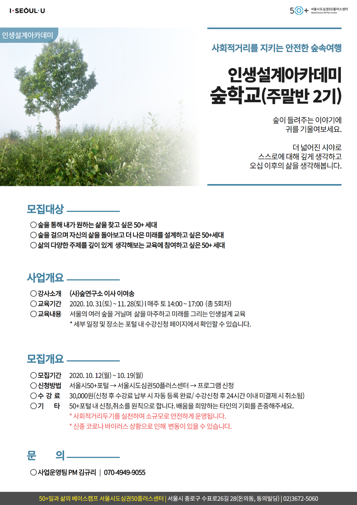 서울숲-남산길숲 | 이여송 | • 숲에서 '나'의 삶의 새로운 미래를 그리다 | 야외활동을 위한 간편한 복장, 물, 간식 |