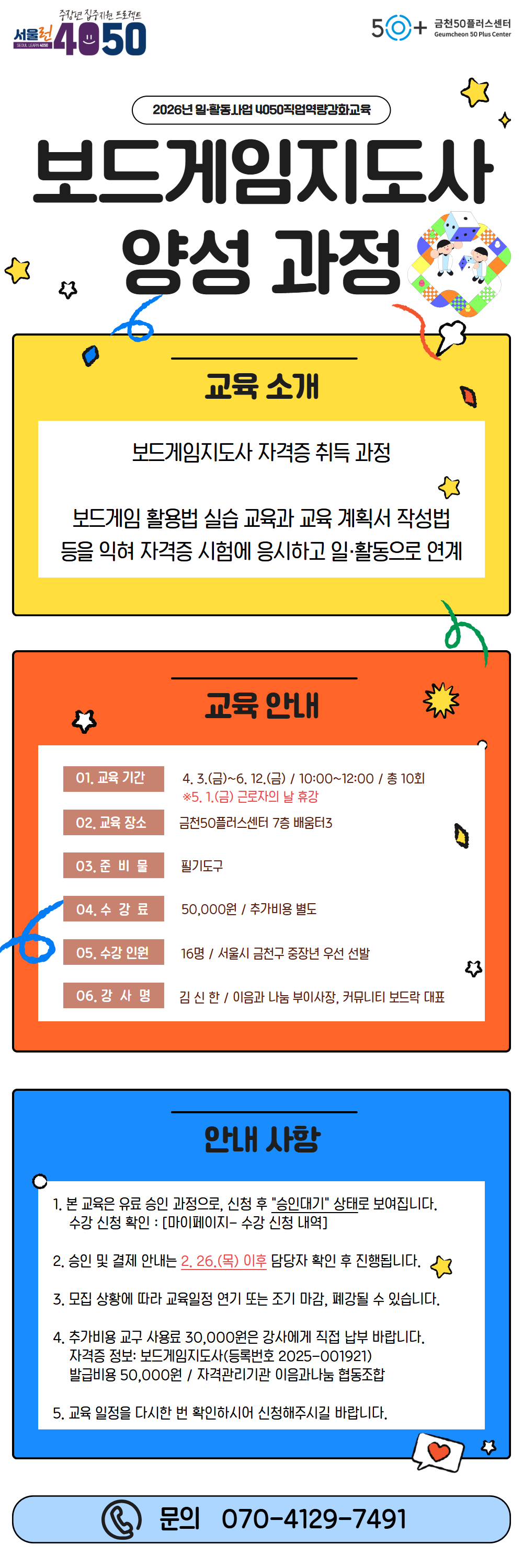 [금천][4050직업역량강화교육] 보드게임지도사 양성 과정
