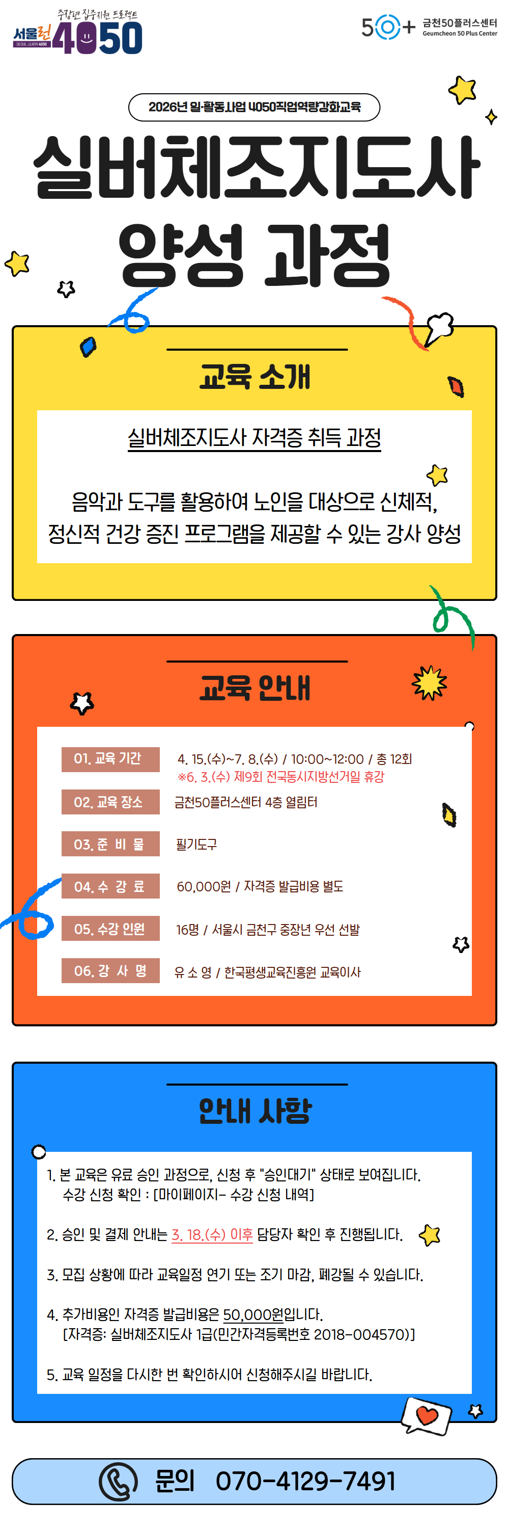 [금천][4050직업역량강화교육] 실버체조지도사 양성과정마감 D-7