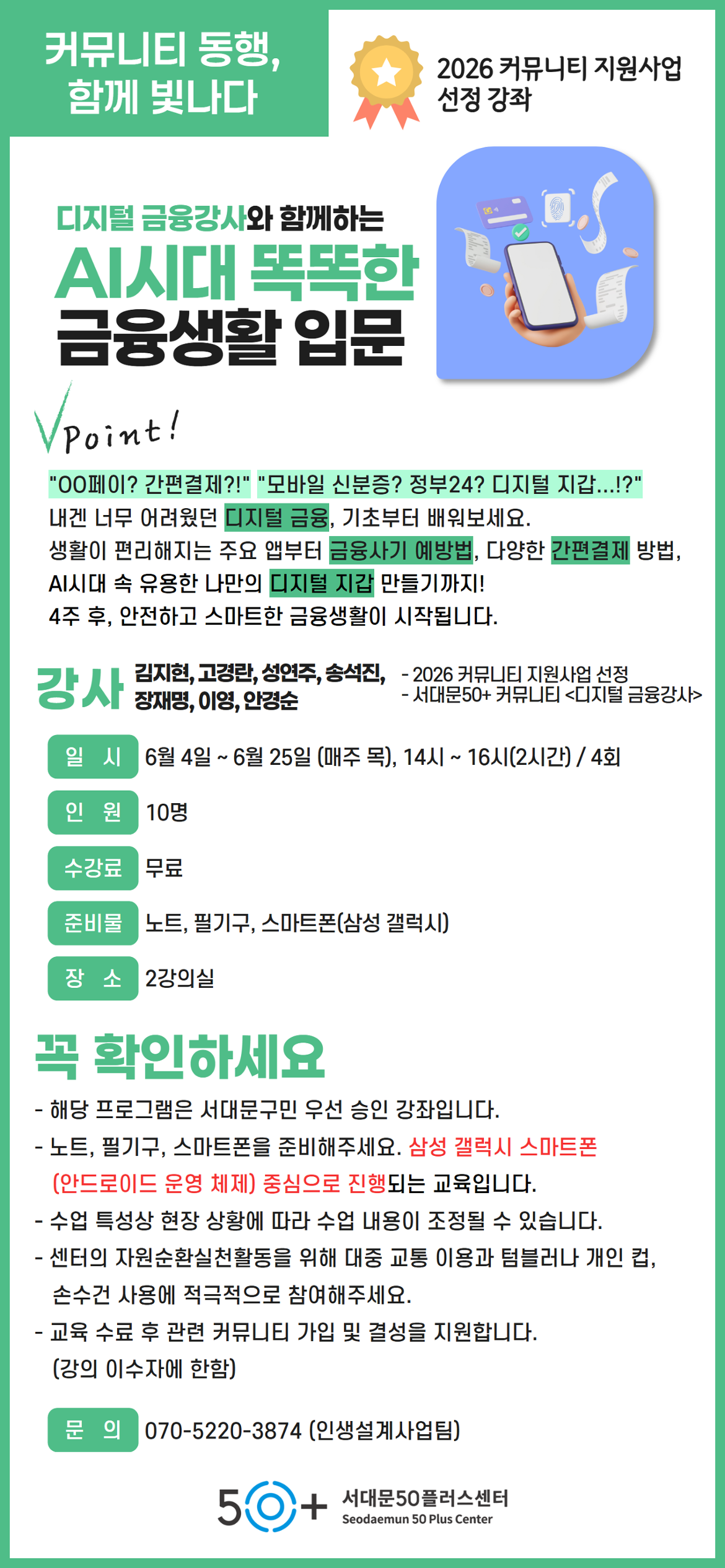 [서대문][커뮤니티 동행, 함께 빛나다] 디지털 금융강사와 함께하는 AI시대 똑똑한 금융생활 입문마감 D-51